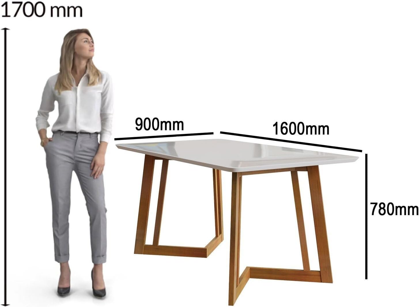 Este conjunto retangular possui dimensões generosas de 160 cm de comprimento, 90 cm de largura e 78 cm de altura. O tampo é construído em MDF de alta qualidade integrado ao vidro temperado de 4mm, conferindo sofisticação e facilidade na limpeza cotidiana.