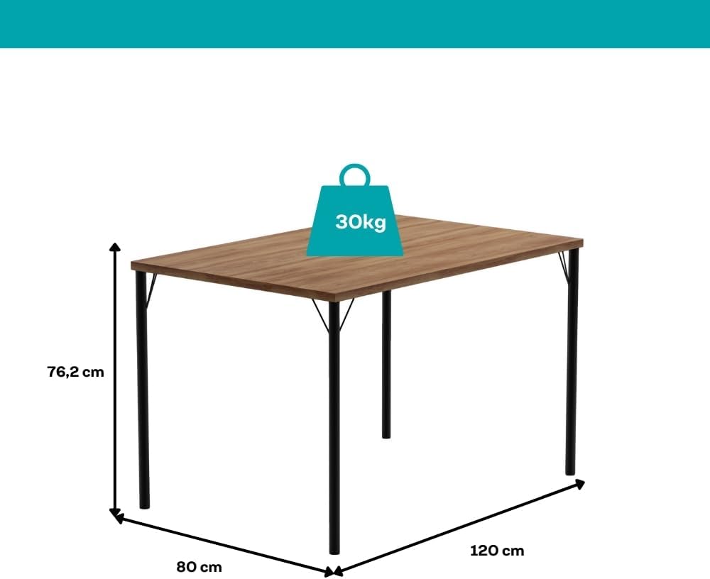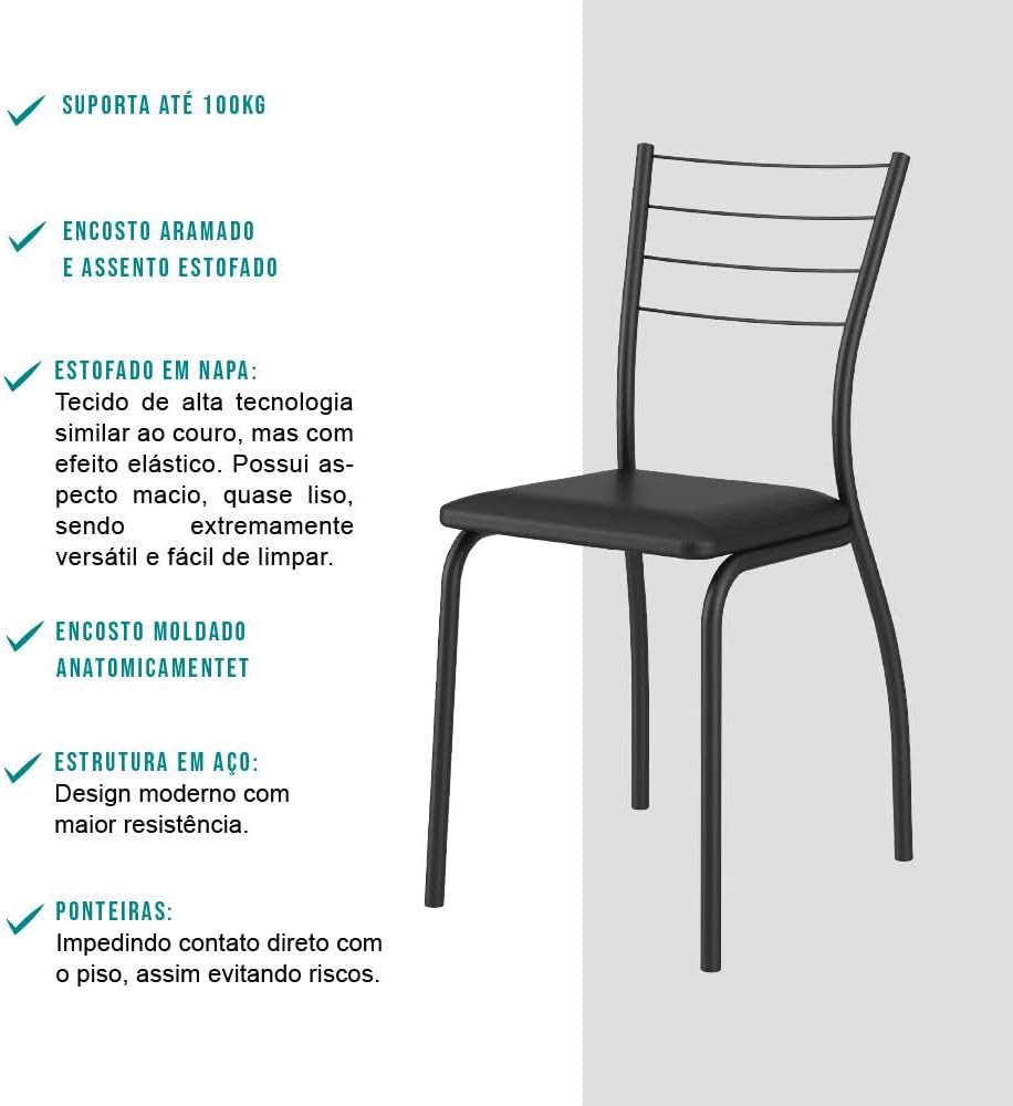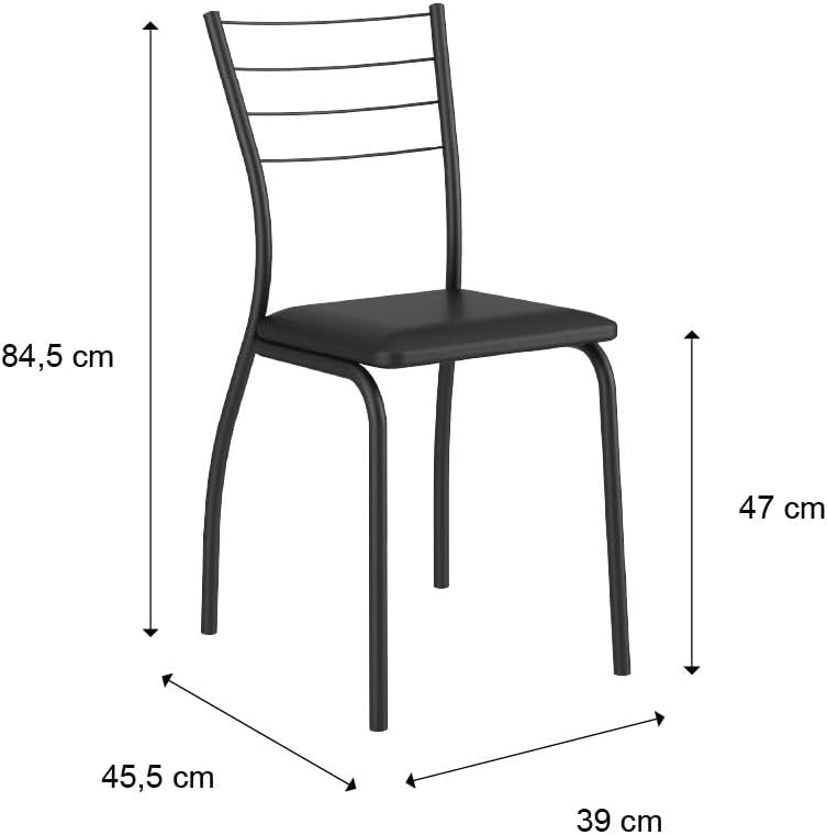 O design inteligente do conjunto de mesa e cadeiras permite uma circulação fluida na sala de jantar, sendo uma solução prática para apartamentos ou casas que precisam de móveis compactos, mas extremamente resistentes. A superfície de fácil manutenção garante que o seu móvel mantenha o aspecto de novo por muito mais tempo.