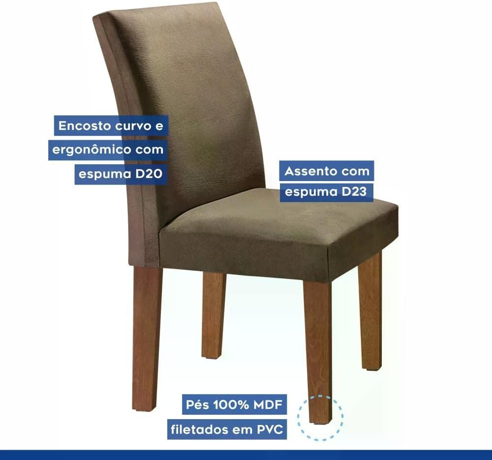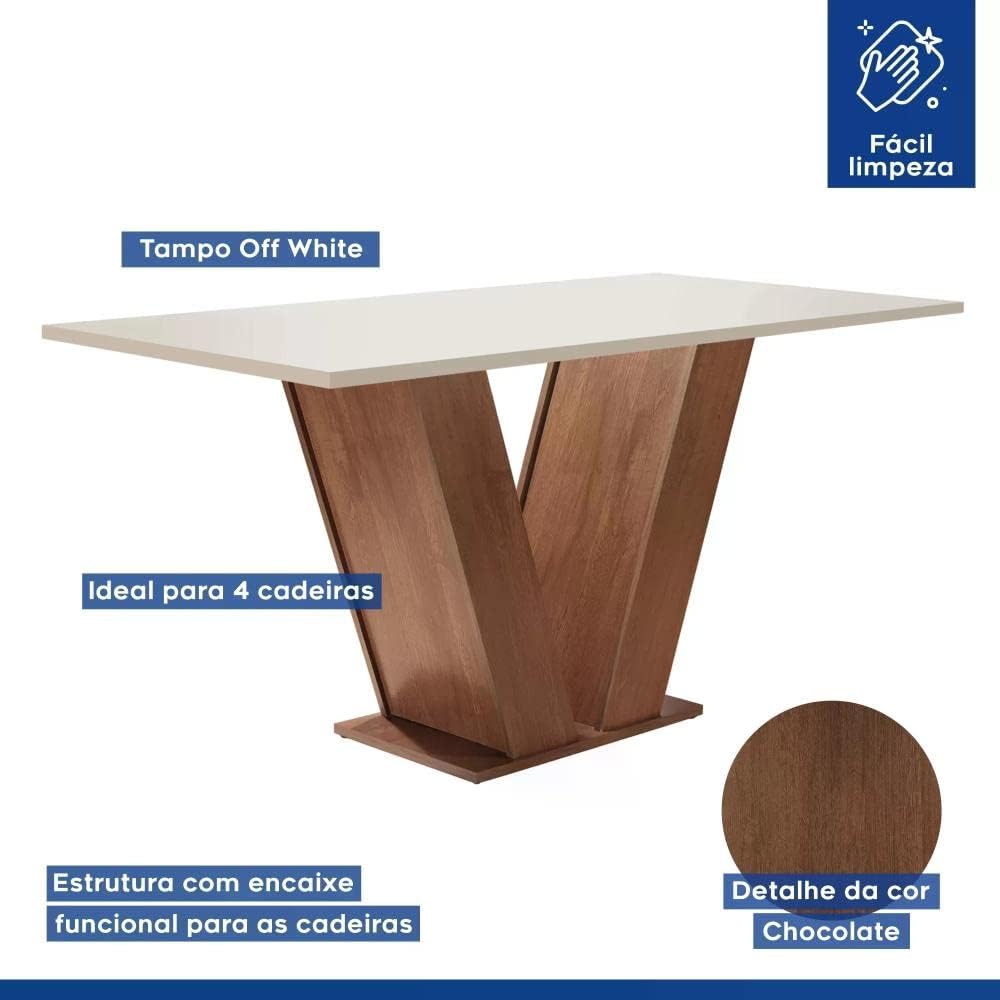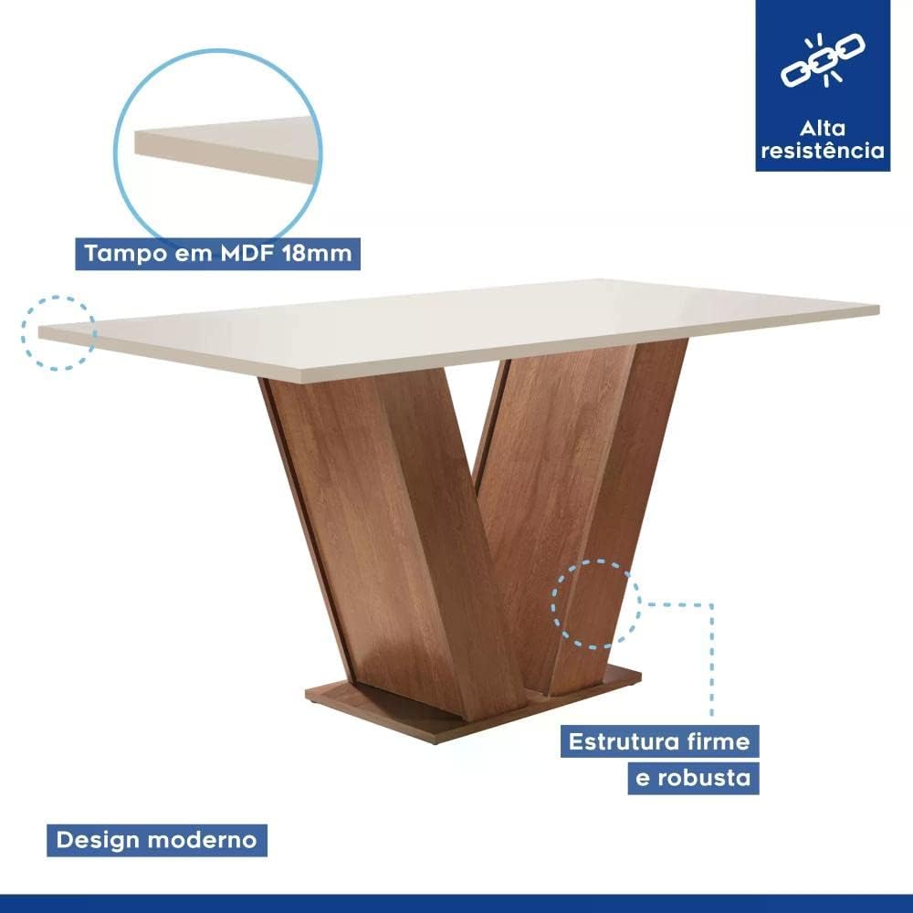 Este conjunto de sala de jantar destaca-se pelo seu design refinado da linha Espanha, apresentando um acabamento em pintura UV fosca que garante maior durabilidade e resistência ao uso cotidiano. O visual moderno e o formato retangular proporcionam uma organização inteligente do espaço, otimizando a circulação em sua casa.
