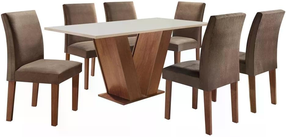 O conjunto de mesa de jantar 6 lugares da Siena Móveis une elegância e funcionalidade para transformar sua casa. Com um design moderno e acabamento refinado na cor chocolate, este móvel é a escolha ideal para quem busca renovar o ambiente com sofisticação e conforto durante as refeições.