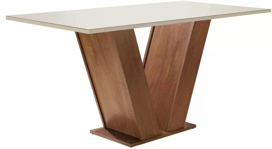 O design retangular da mesa com tampo de vidro temperado e acabamento fosco em pintura UV oferece alta durabilidade e resistência contra riscos, além de facilitar a higienização diária, mantendo o aspecto de móvel novo por muito mais tempo.
