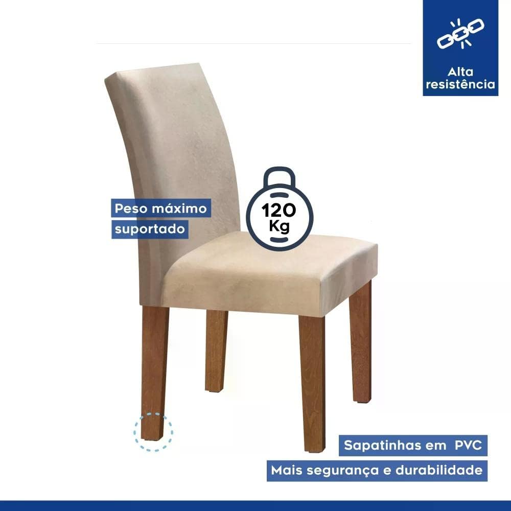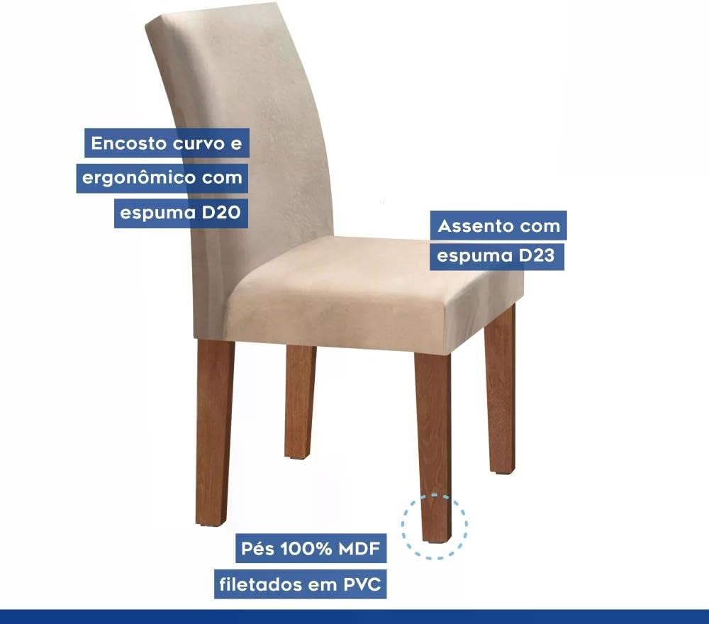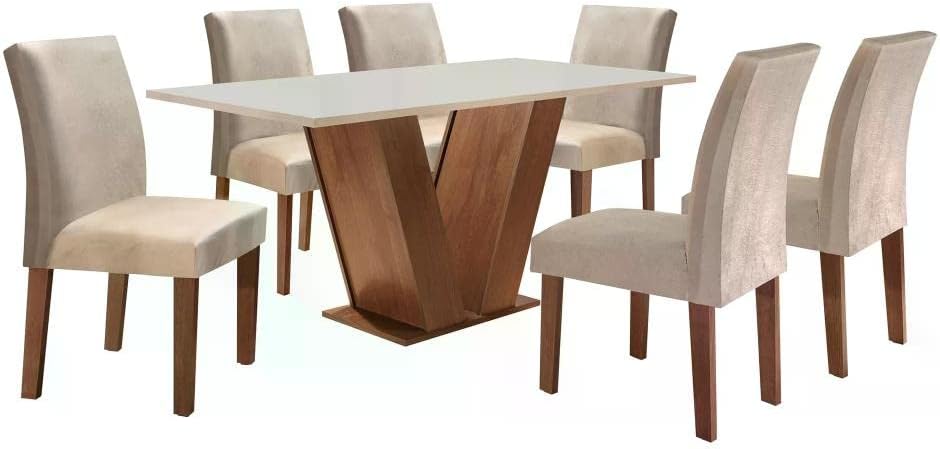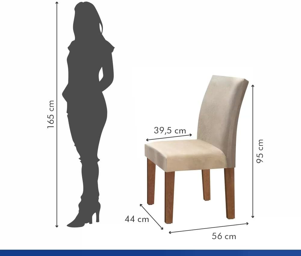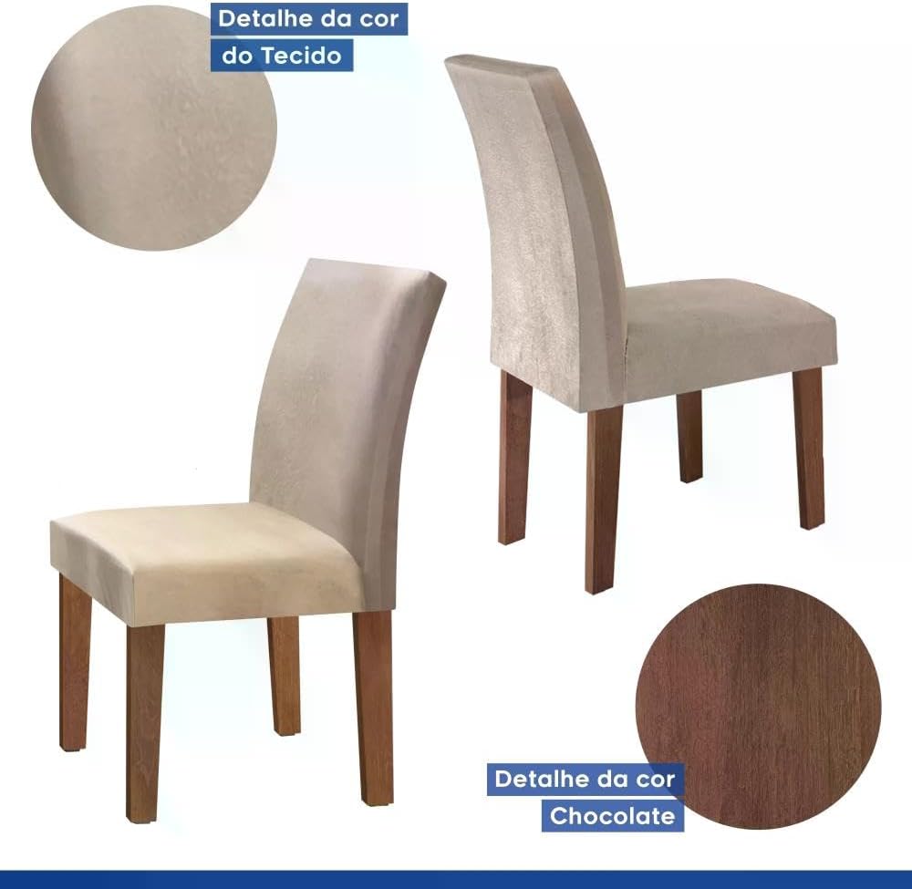 Este conjunto conta com 6 cadeiras confortáveis revestidas em tecido Suede, proporcionando um toque macio e maior bem-estar durante o uso prolongado. O assento possui espuma D-23 e o encosto D-20, garantindo o suporte ideal para a postura.