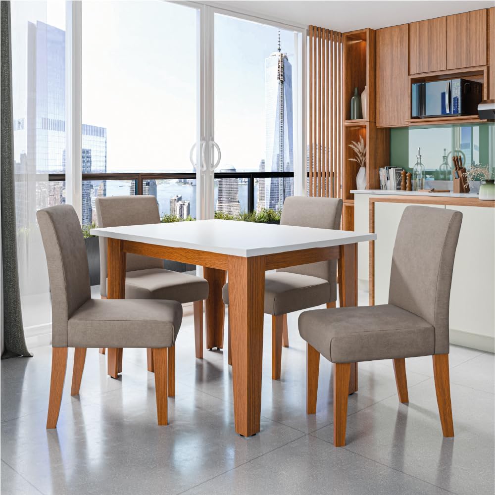 O Conjunto Sala de Jantar Mesa Miami 1,20m com 4 Cadeiras Trieste é ideal para famílias que possuem salas de jantar ou cozinhas compactas e não abrem mão de um estilo moderno. É a escolha certeira para quem deseja um móvel de fácil manutenção e visual atraente para receber amigos e familiares em um ambiente acolhedor.