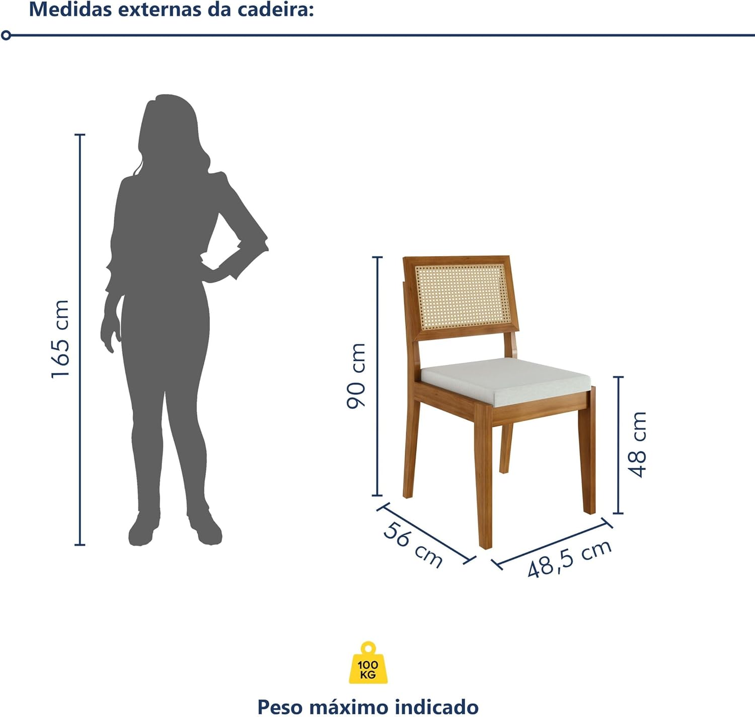 O conjunto é entregue com a mesa desmontada, sendo necessário realizar a montagem conforme o manual. Por se tratar de madeira natural, pequenas diferenças de coloração entre as peças são características normais do material e não configuram defeito de fabricação.