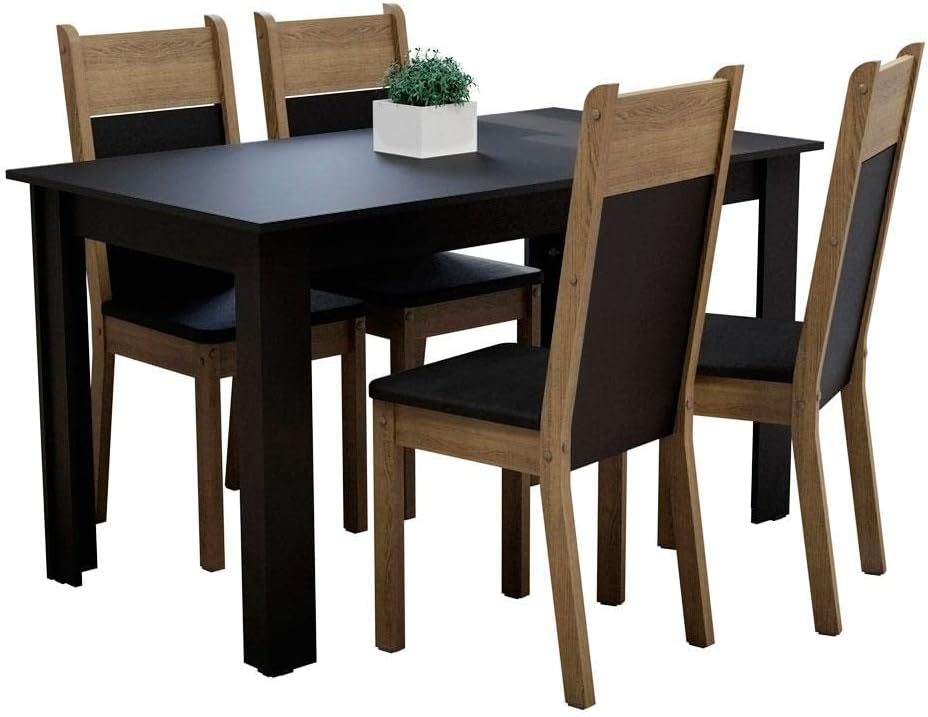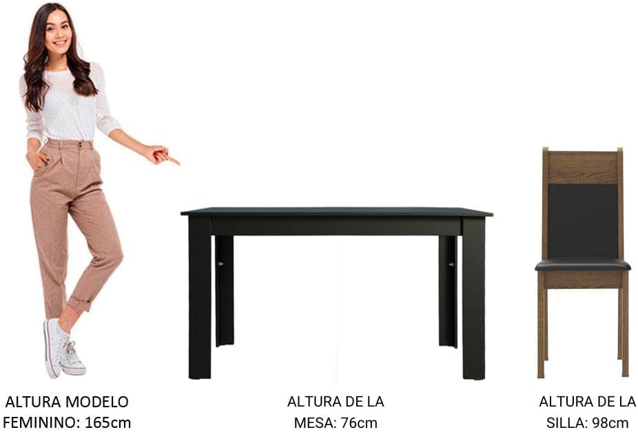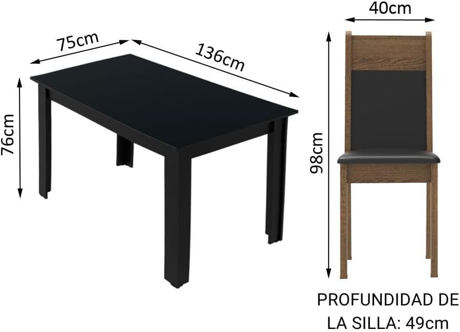 O modelo MDJA040002D8PT possui dimensões montadas de 75 cm de profundidade, 136 cm de largura e 76 cm de altura. Com um peso total de 43,5 quilogramas, a mesa de jantar retangular oferece a estabilidade necessária para suportar louças e decorações com total segurança.
