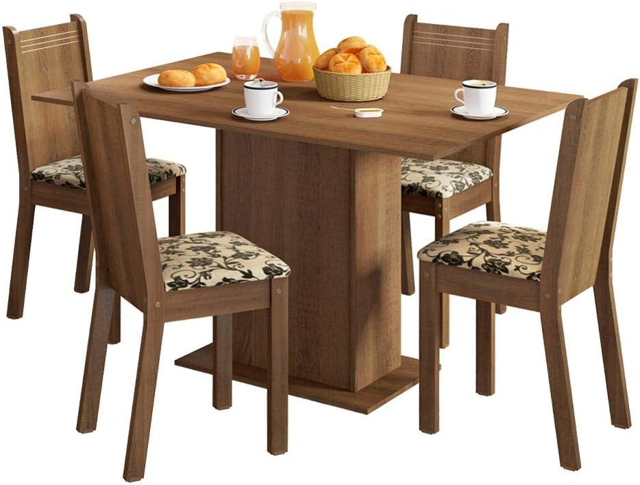 Conjunto Sala de Jantar Madesa Lexy Mesa 4 Cadeiras Rustic Bege