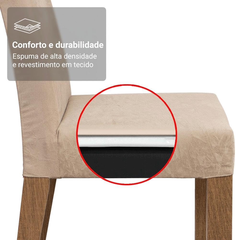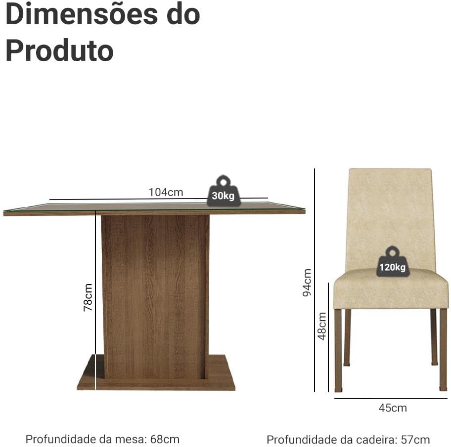 Este conjunto destaca-se pela sua construção em madeira de engenharia, garantindo uma estrutura robusta e durável para o uso cotidiano. O acabamento em tons amadeirados proporciona uma sensação de aconchego, tornando o ambiente mais convidativo para refeições em família ou momentos de lazer.