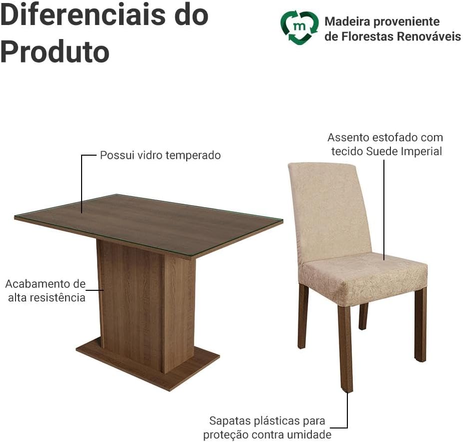O Conjunto de Jantar Madesa é a escolha ideal para quem busca otimizar o espaço sem abrir mão do estilo e do conforto. Fabricada com materiais de alta qualidade, esta mesa de jantar com 4 lugares apresenta um design moderno em tons rustic e imperial, que se adaptam perfeitamente a diferentes decorações de interiores.