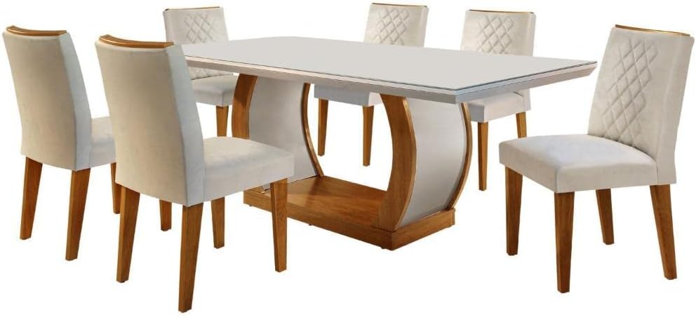 Conjunto Sala de Jantar Rufato Luanda 6 Cadeiras Off White
