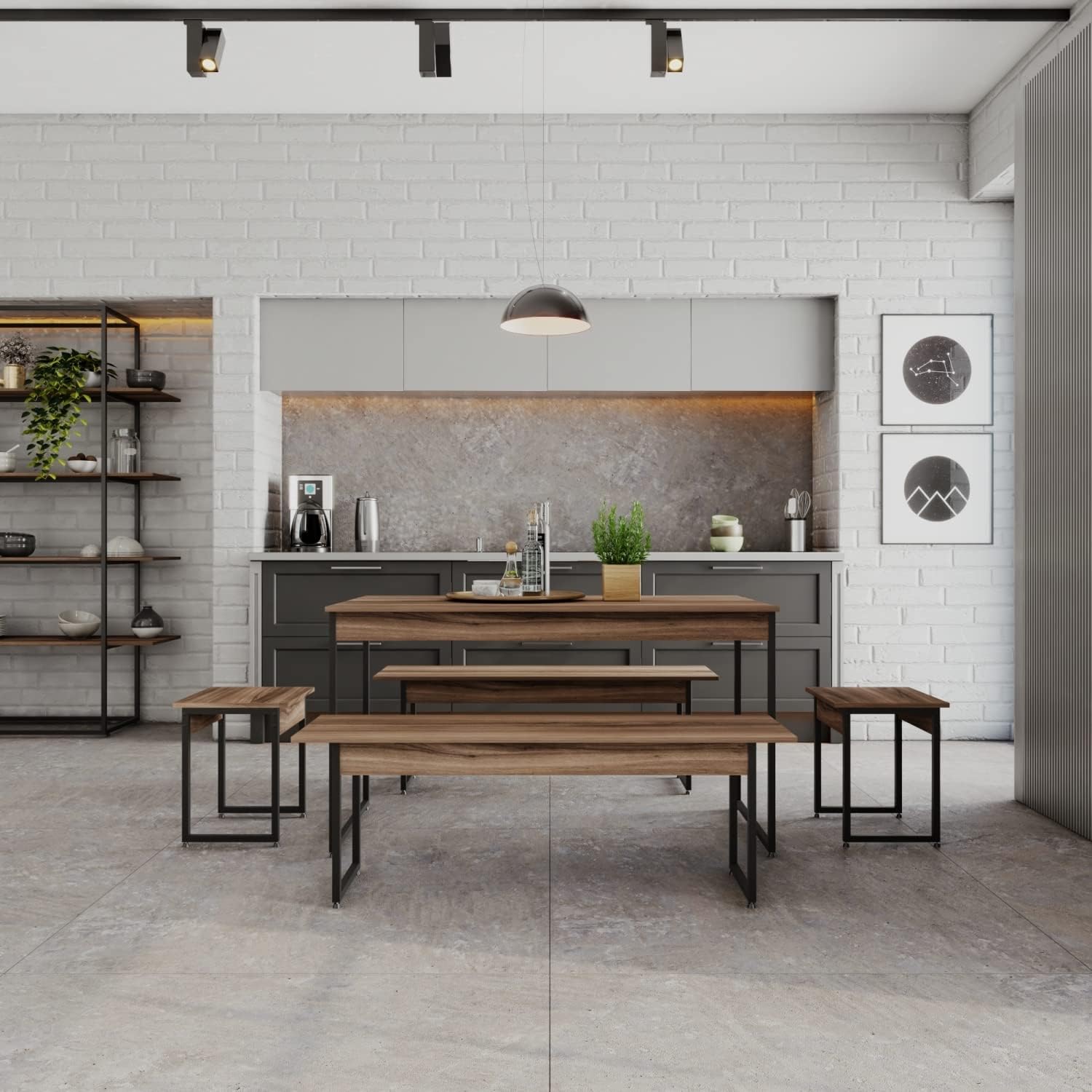 Este produto é ideal para famílias ou pessoas que apreciam o conceito aberto e decoração industrial, sendo perfeito para quem precisa de um conjunto completo com 5 peças que ocupe o espaço de forma inteligente. É a escolha certa para quem busca praticidade na limpeza e um móvel que funcione tanto para jantar quanto para momentos de trabalho ou lazer.