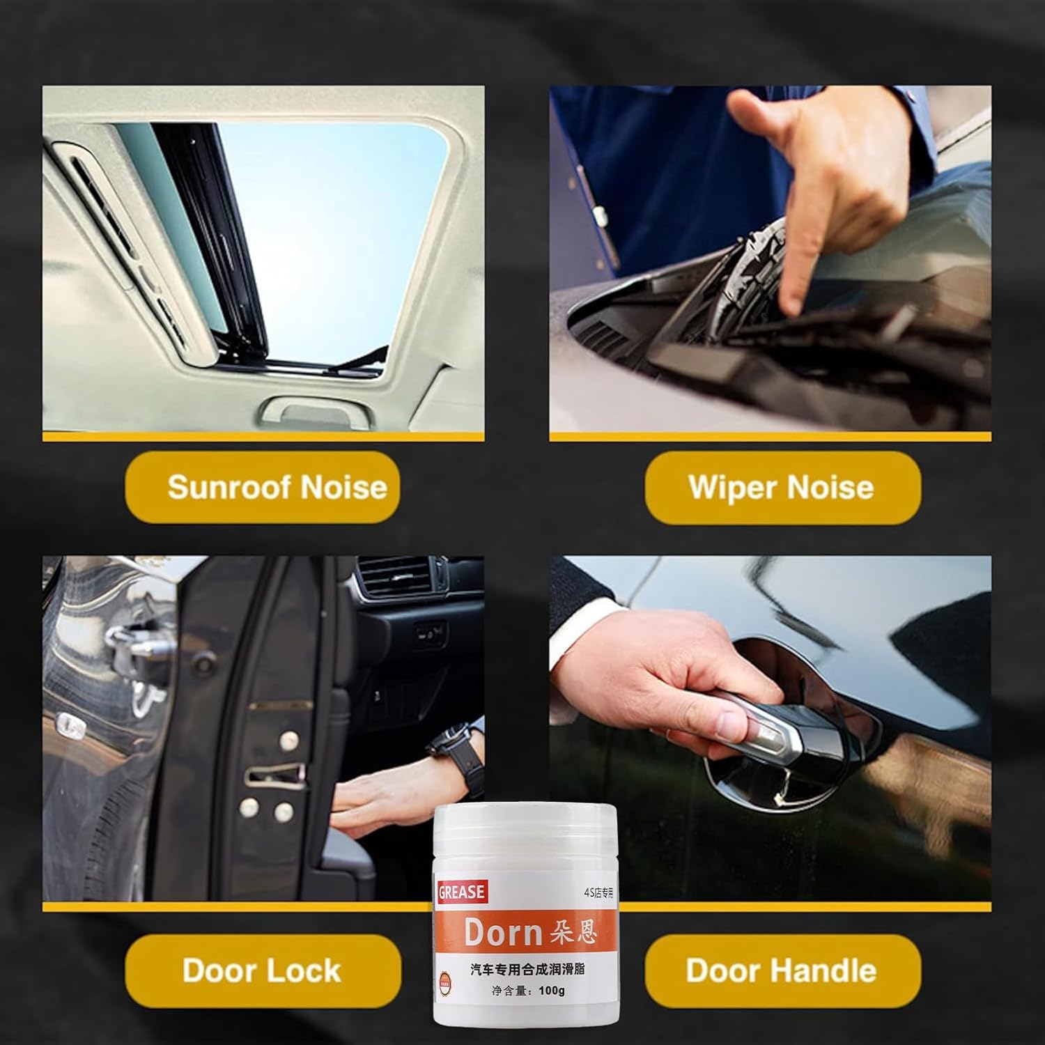 Compatível com diversas partes do veículo, pode ser usado em trilhos do teto solar, maçanetas, dobradiças, limitadores, hastes de elevação do porta-malas e espelhos retrovisores, aumentando a funcionalidade e o desempenho automotivo.