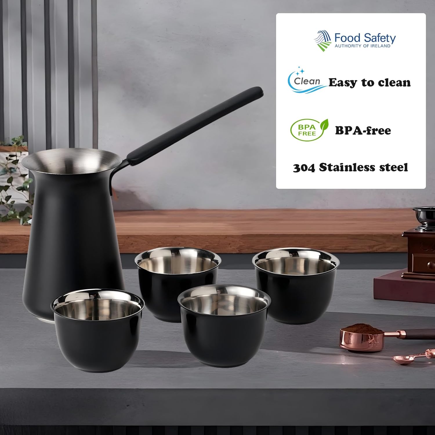 Sendo um produto versátil, este modelo não serve apenas para o café turco. O design robusto permite que ele seja utilizado para diversas finalidades na cozinha, tornando-se uma peça prática e multifuncional para o preparo de bebidas quentes ou pequenas porções de líquidos em geral.