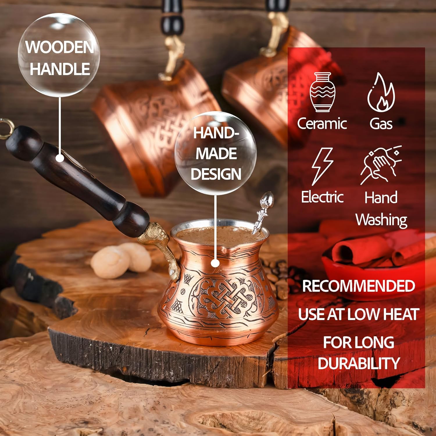 Este utensílio é perfeito para entusiastas do café que apreciam os métodos de extração tradicionais da culinária turca e buscam um equipamento durável, prático e esteticamente impecável para o seu dia a dia.