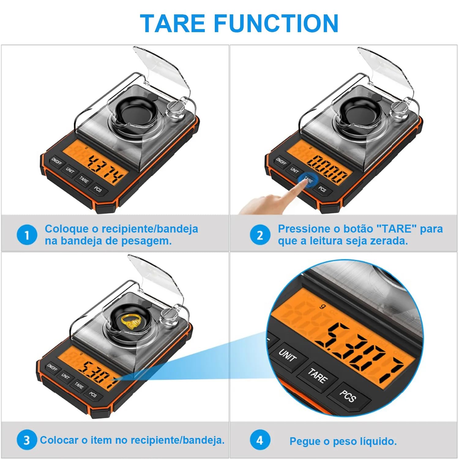 Essa balança digital destaca-se pela alta precisão do sensor, garantindo resultados confiáveis em cada uso. A função Tare permite zerar a balança antes da pesagem, facilitando a medição de recipientes. Já a função PCS é perfeita para contagem exata de pequenas peças, ideal para joalheiros ou quem trabalha com grânulos.