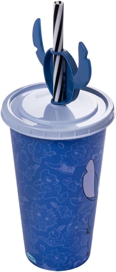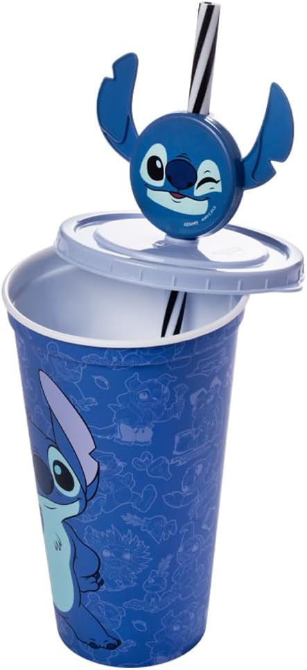 O design deste copo com canudo é inspirado na adorável história da garotinha havaiana e sua perigosa, porém carismática, experimentação genética. Com cores vibrantes e um visual lúdico, o copo é uma excelente escolha para quem busca funcionalidade e estilo colecionável em um único produto.