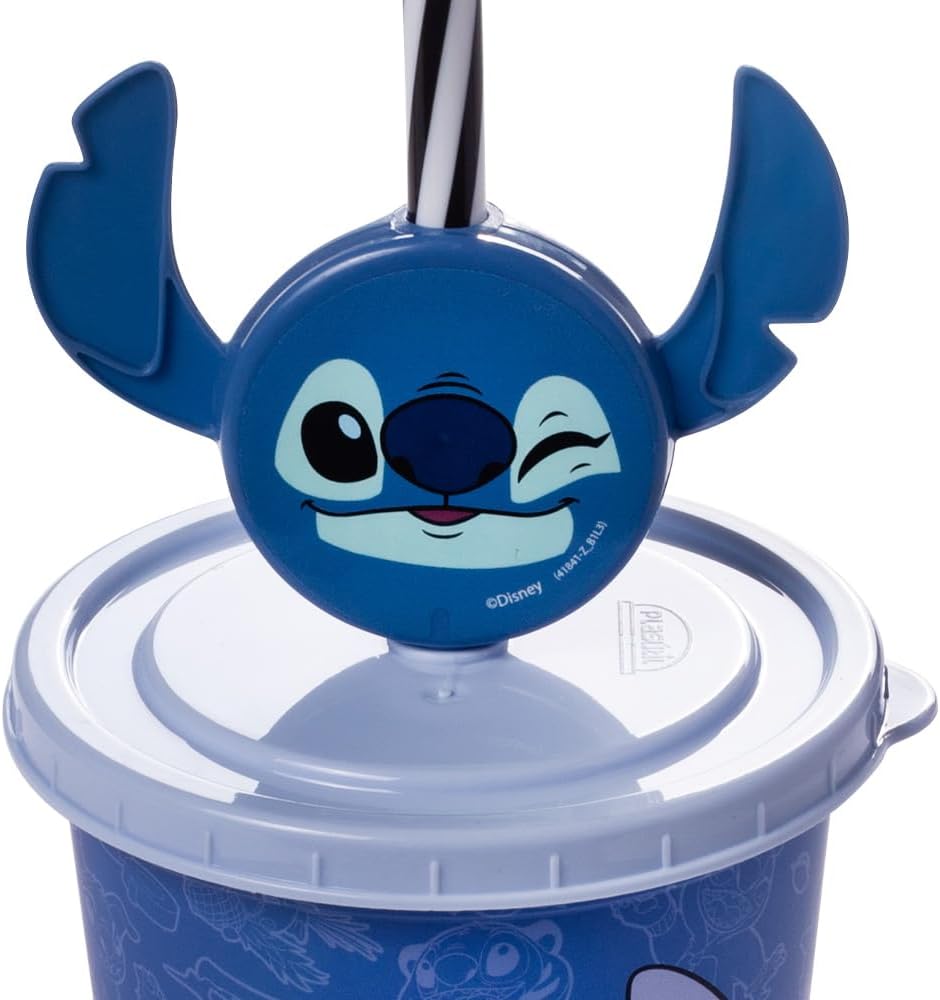 Copo com Canudo Plasútil Stitch 500ml com Pin Infantil