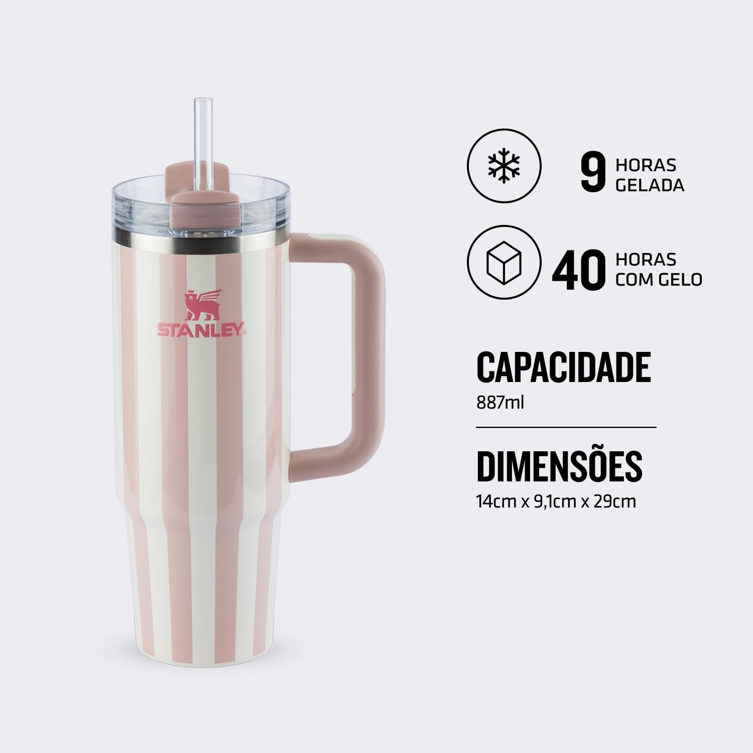 Projetado para oferecer praticidade máxima, este copo térmico Stanley conta com um canudo removível que torna o hábito de beber água muito mais espontâneo. A sua alça robusta facilita o transporte, permitindo que você mantenha sua hidratação em qualquer lugar de forma confortável e segura.
