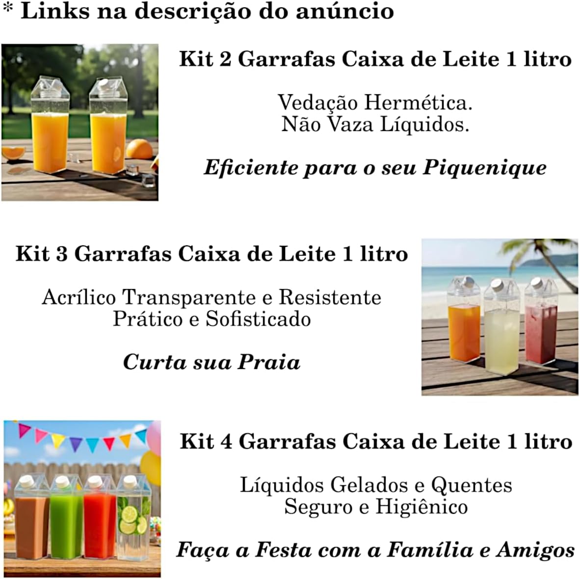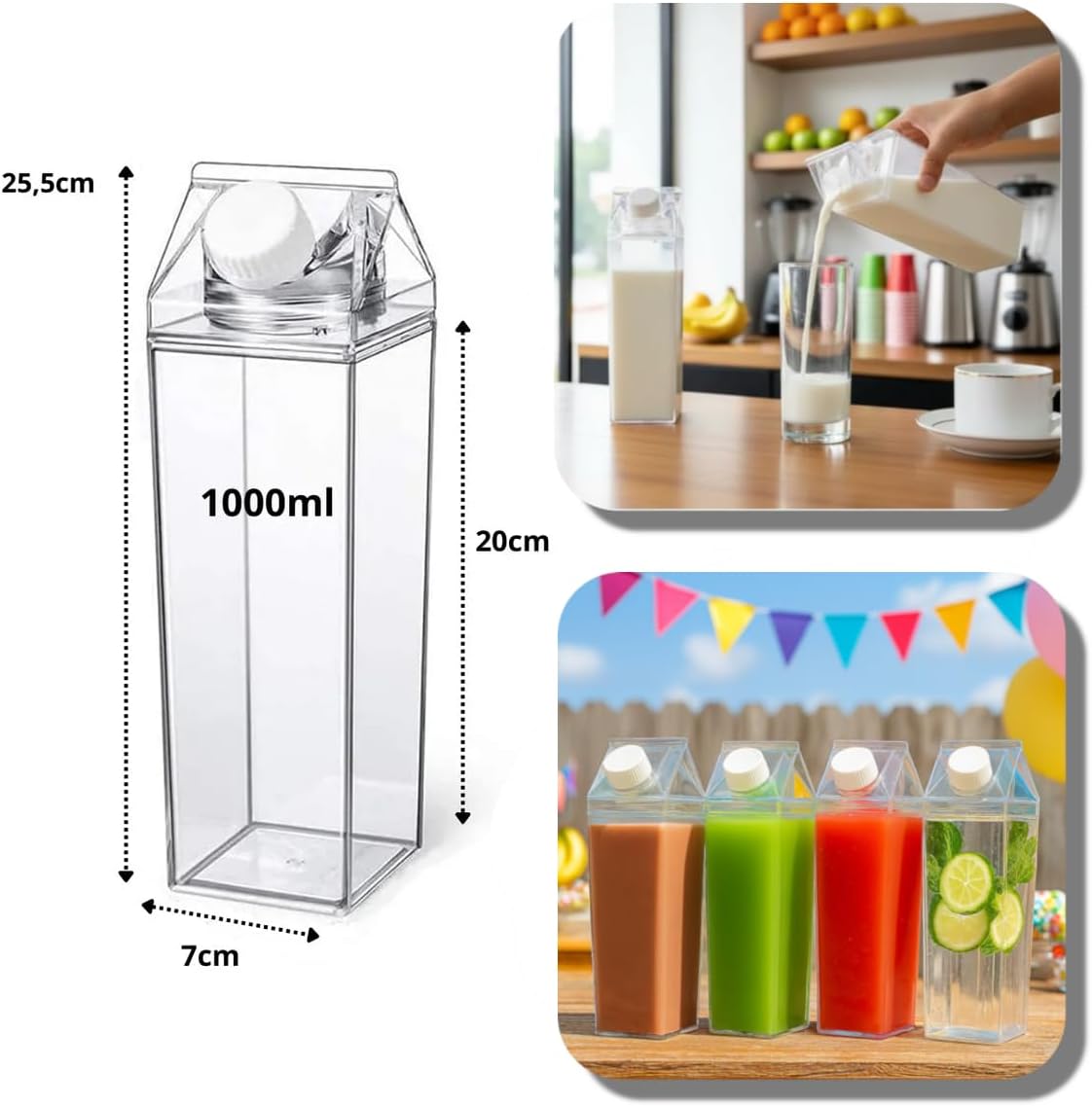 A garrafa estilo caixa de leite é a solução perfeita para quem busca unir design inovador e máxima praticidade no dia a dia. Com capacidade para 1 litro e fabricada em acrílico resistente, este item oferece uma forma elegante de armazenar e servir suas bebidas favoritas com total segurança onde quer que você esteja.