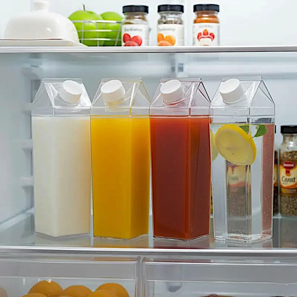 Esta garrafa estilo caixa de leite destaca-se pela sua vedação hermética, que garante um fechamento seguro e higiênico, evitando vazamentos e derramamentos indesejados. Seu material em acrílico transparente permite a visualização imediata do conteúdo, tornando a organização na geladeira muito mais simples e eficiente.