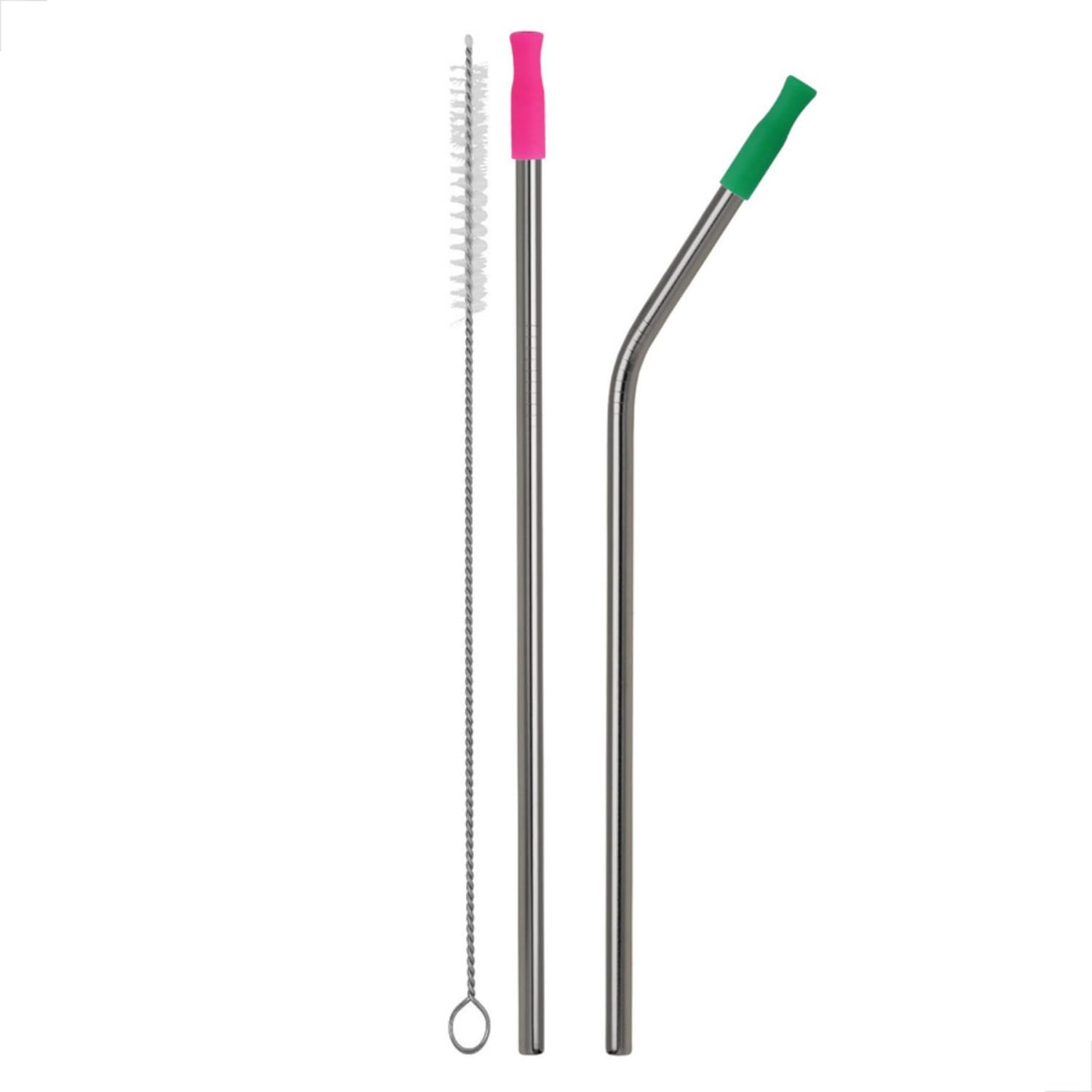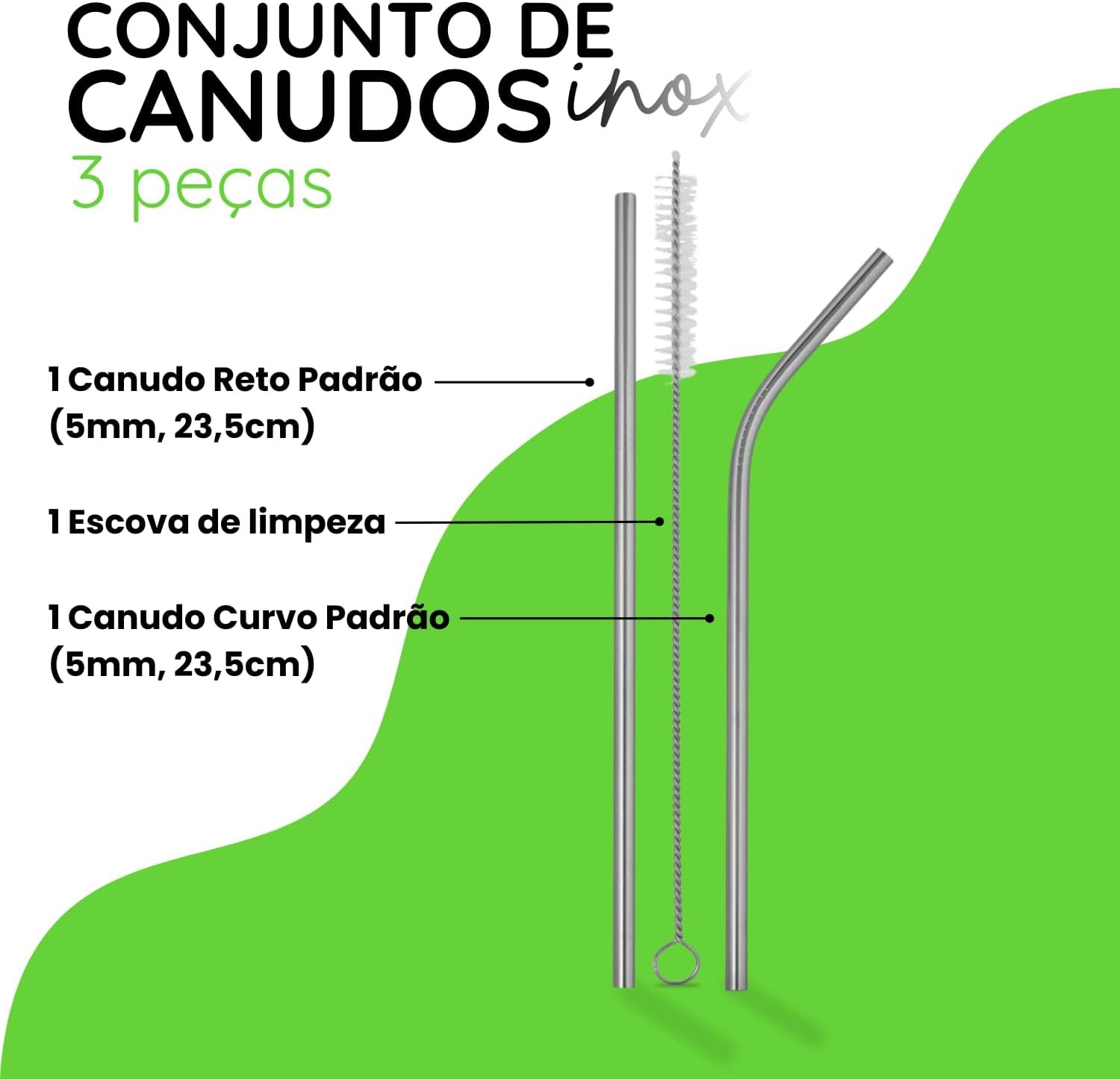 O kit é composto por um canudo reto e um curvado, ambos com 21cm de comprimento e 5mm de diâmetro interno. O produto possui peso total de 50g e dimensões de 21,5 x 0,8 x 0,8 cm, sendo extremamente leve e fácil de transportar para onde você precisar.