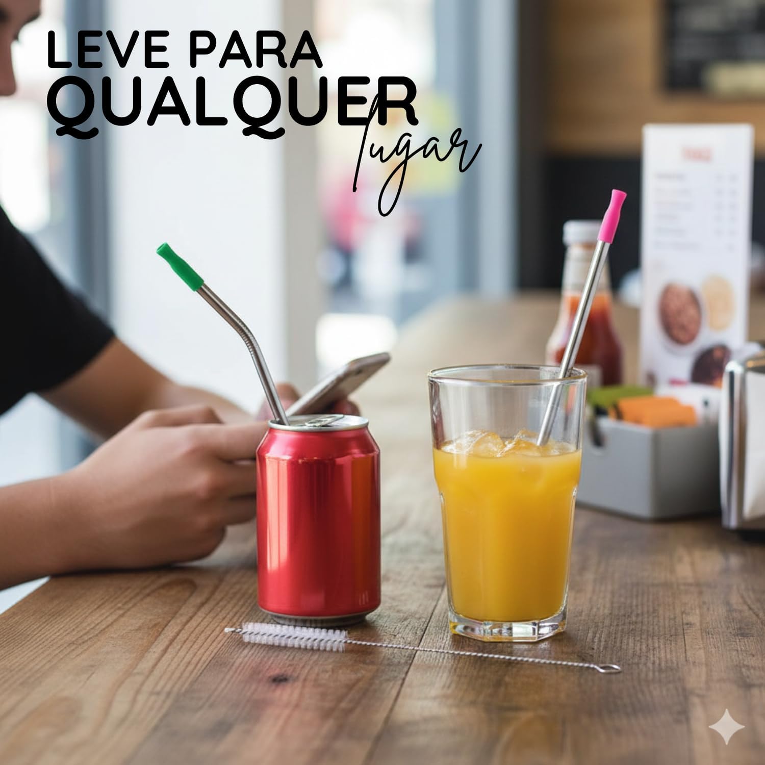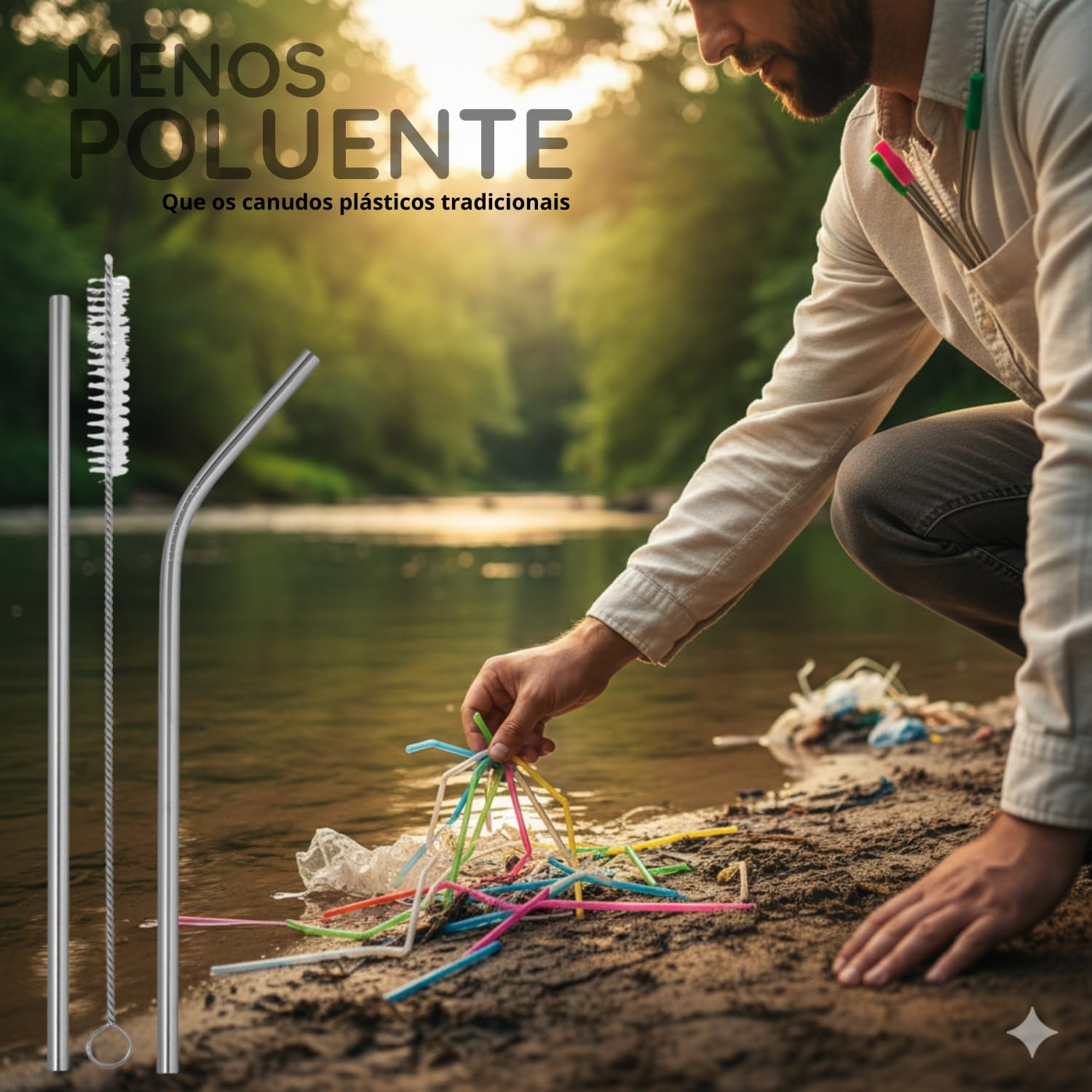 Este conjunto destaca-se pela alta durabilidade, sendo fabricado em aço inoxidável resistente que não oxida, não quebra e suporta variações de temperatura. Por ser um kit de canudos reutilizáveis, você contribui diretamente para a redução de resíduos plásticos, mantendo o estilo em festas ou no uso cotidiano em casa.