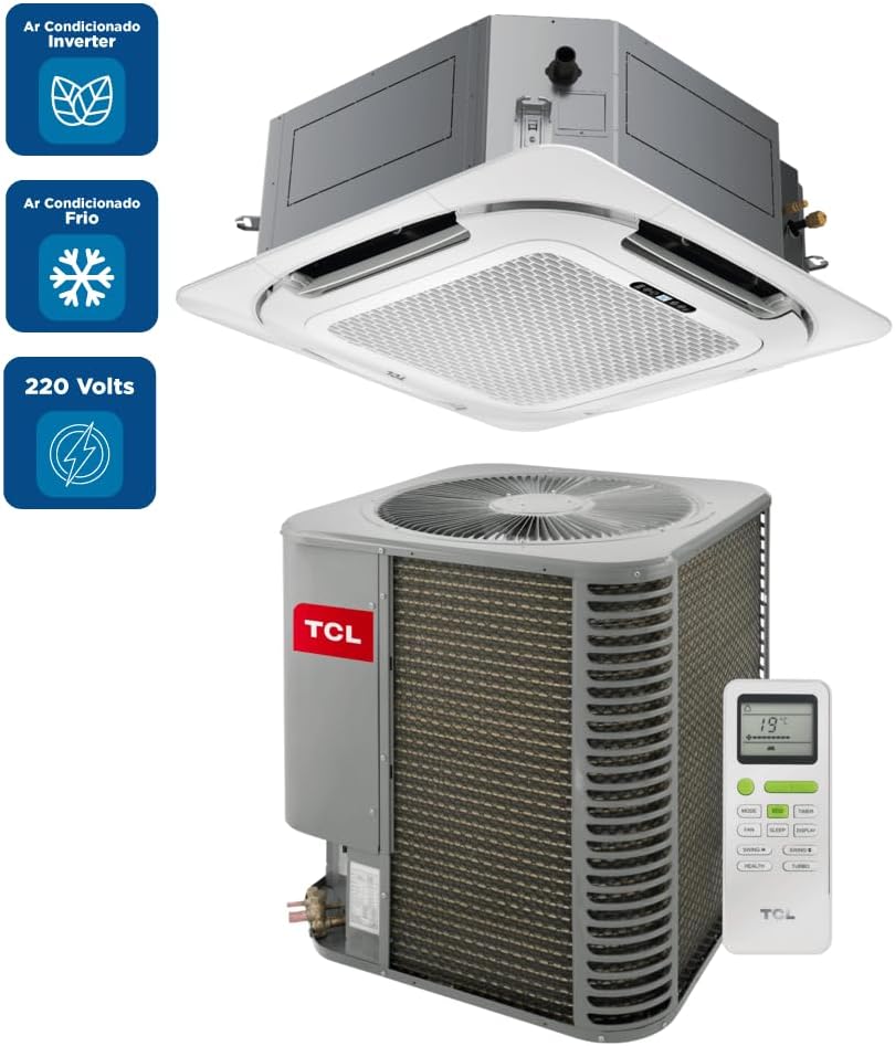 O Ar Condicionado Split Cassete Inverter TCL 55000 BTU/h 4 Vias Frio TAC55CSGCTINV 220 Volts é a solução perfeita para quem busca conforto térmico eficiente em ambientes comerciais e residenciais. Com alta capacidade de resfriamento, este modelo inverter oferece economia de energia e distribuição uniforme do ar, ideal para espaços de médio a grande porte.