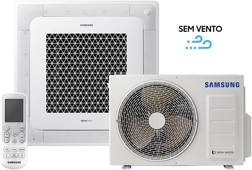 O Ar-Condicionado Split Inverter Cassete 24000 BTUs Samsung WindFree Quente e Frio oferece conforto excepcional com a exclusiva tecnologia WindFree, que resfria potentes ambientes sem gerar vento direto desconfortável. Com controle via Wi-Fi e operação silenciosa, este modelo é ideal para quem busca eficiência e praticidade no controle do clima.