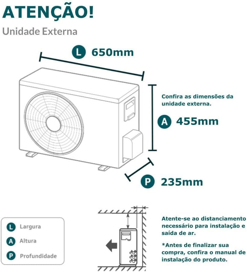Este ar-condicionado split possui dimensões de 19,5 x 71 x 28 cm, pesa 6,5 quilogramas e opera com voltagem de 220 volts, consumindo 2637 watts de potência. O nível de ruído é baixo, apenas 38 decibéis, garantindo um ambiente silencioso. Seu consumo anual de energia é de 980 kilowatt-horas, refletindo sua eficiência A comprovada.