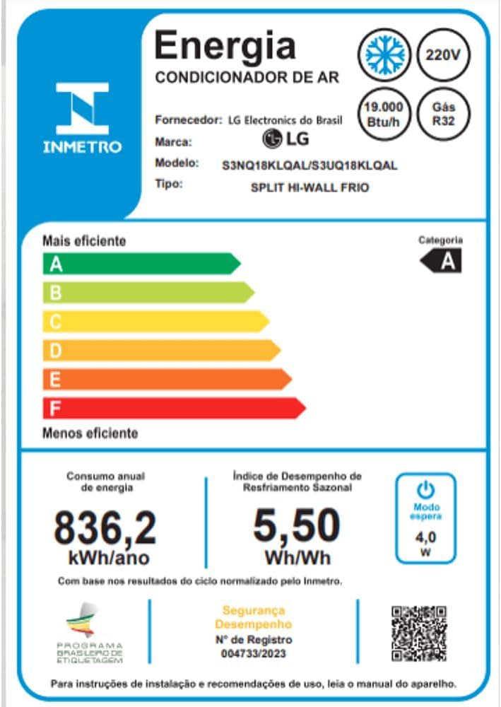 Com controle eletrônico avançado, o aparelho proporciona economia e melhor performance conforme a necessidade do ambiente. A marca LG é reconhecida pela qualidade dos componentes e tecnologia inovadora que garantem maior vida útil ao equipamento.
