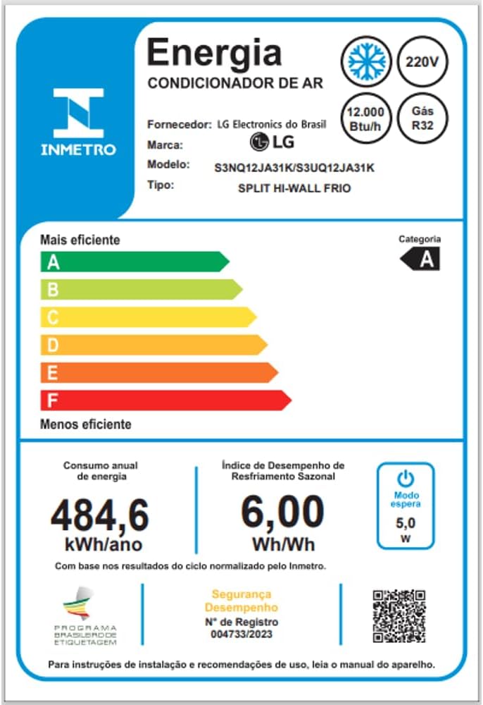 Fabricado pela LG, modelo S3UQ12JA31K.EB2GAM1 | S3NQ12JA31K.EB2GAM, este produto alia tecnologia moderna a confiabilidade conhecida da marca. Sua classificação é Nº 9 em Ar-Condicionado Split no ranking dos mais vendidos, destacando-se no mercado de eletrodomésticos.