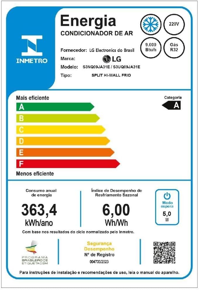 Inclui controle remoto e tem certificação de qualidade da fabricante LG, referência no segmento de eletrodomésticos. O compressor inverter e as múltiplas funcionalidades qualificam este ar-condicionado como um minisplit moderno e eficiente.