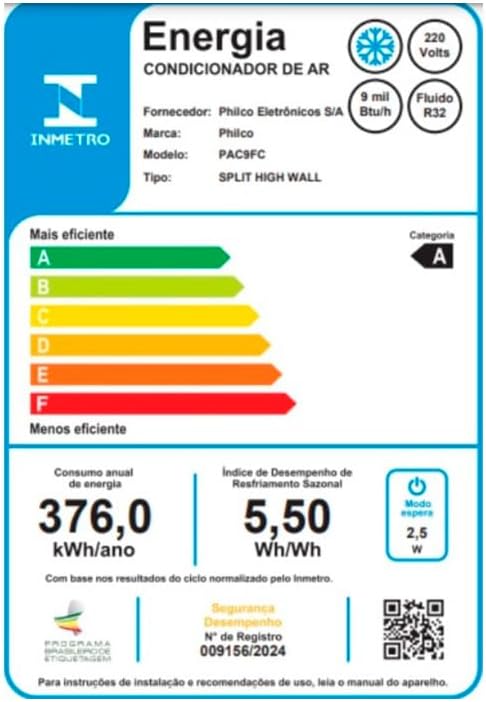 Este modelo split tipo minisplit tem eficiência energética classe A, funciona com instalação tipo split e oferece 9000 BTU/h de capacidade frigorífica. Equipado com compressor inverter, pesa e dimensiona-se conforme padrão do segmento, utilizando serpentina em cobre para maior durabilidade e resistência à corrosão. O filtro antibacteriano é lavável e garante um ar mais saudável.