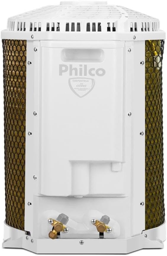 O produto acompanha evaporadora, condensadora e controle remoto. A instalação deve ser realizada por empresas credenciadas para garantir a validade da garantia. É possível instalar o filtro de proteção contra vírus e o kit de Wi-Fi Philco Home Smart, ampliando funcionalidades.