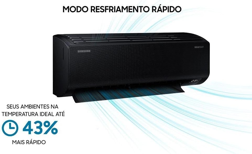 O Ar-Condicionado Split Inverter 12000 BTUs Samsung WindFree Connect Black High Wall oferece uma combinação perfeita entre design moderno e tecnologia avançada para quem busca conforto e eficiência. Com seu acabamento em preto elegante, o aparelho se destaca em qualquer ambiente. A tecnologia Wi-Fi integrada via SmartThings permite controlar o ar-condicionado pelo smartphone, facilitando o ajuste de temperatura e a programação de horários, ideal para uma climatização inteligente.