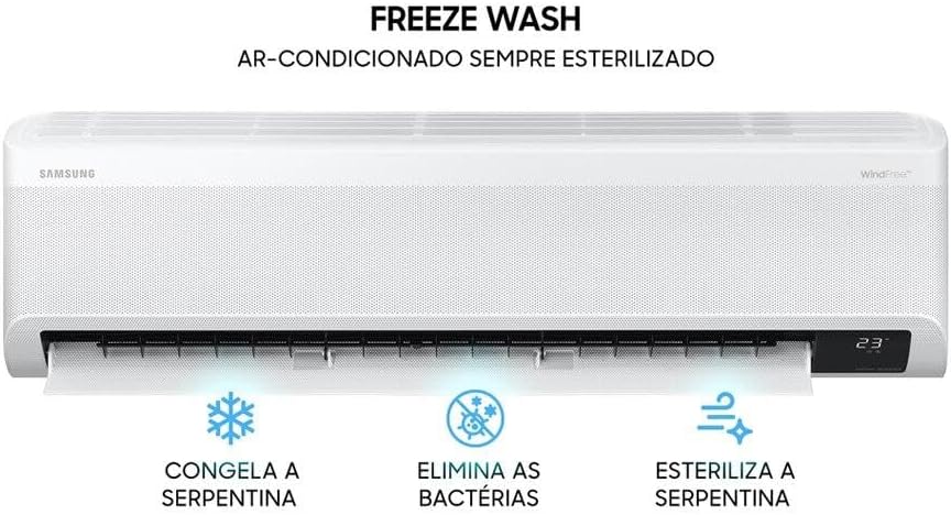 Este modelo split da Samsung oferece um sistema de refrigeração silencioso e eficaz, perfeito para ambientes residenciais ou comerciais. O controle remoto facilita o ajuste da temperatura sem sair do lugar, aumentando o conforto. Além disso, a função desumidificadora melhora a qualidade do ar, reduzindo a umidade excessiva e prevenindo o mofo.