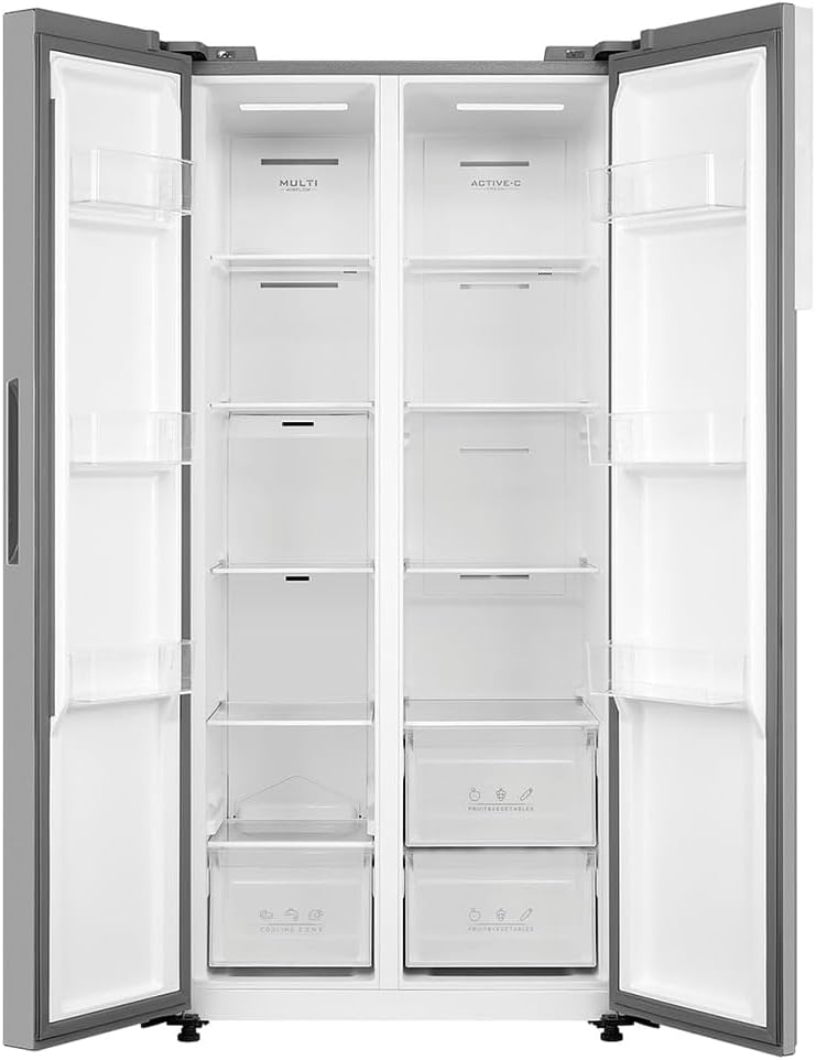 Este refrigerador freestanding conta com sistema de descongelamento automático, facilitando a manutenção e garantindo alimentos sempre frescos. Suas prateleiras de aço inoxidável proporcionam durabilidade e fácil limpeza, enquanto o design lado a lado otimiza o espaço e o acesso aos compartimentos.