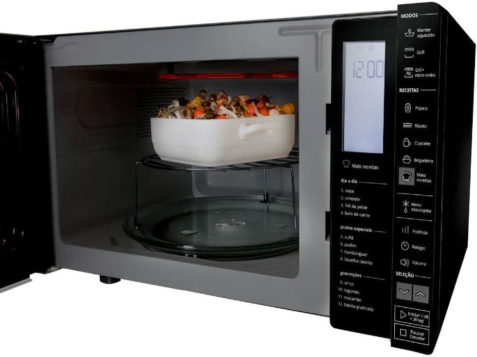 Com potência de 900 watts e certificação ENCE nível A, este microondas une eficiência energética e alta performance, resultando em um aparelho econômico e rápido no preparo. O acabamento em aço inoxidável na cor preta oferece resistência e modernidade, valorizando sua bancada.