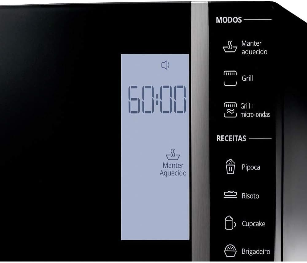 O painel touch do micro-ondas Brastemp proporciona fácil controle e interação rápida, facilitando o uso diário. A função Grill combinada com o micro-ondas permite finalizar receitas com textura crocante, valorizando o sabor dos alimentos. Além disso, o recurso Manter Aquecido mantém suas refeições na temperatura ideal por mais tempo, garantindo praticidade no dia a dia.