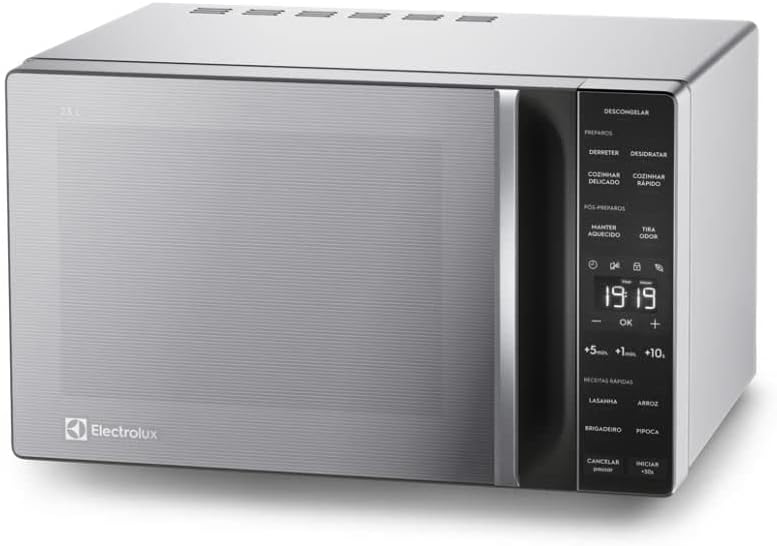 O micro-ondas Electrolux modelo 947005198 une praticidade e eficiência para seu dia a dia na cozinha. Com potência de 1100W e capacidade de 23 litros, este aparelho oferece diversas funções inteligentes para facilitar seus preparos. Funções como descongelamento automático, manter aquecido e receitas pré-programadas tornam o uso mais rápido e versátil, ideal para quem busca eficiência na rotina.