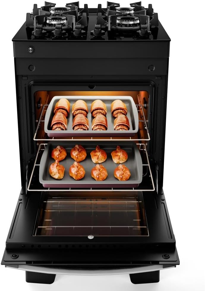 O forno de 50 litros conta com 2 grades internas e uma assadeira, facilitando o preparo de diversos pratos simultaneamente. Com painel de controle intuitivo, operado via botões de pressão e puxador ergonômico, você terá total precisão no controle térmico e segurança durante todas as suas receitas.