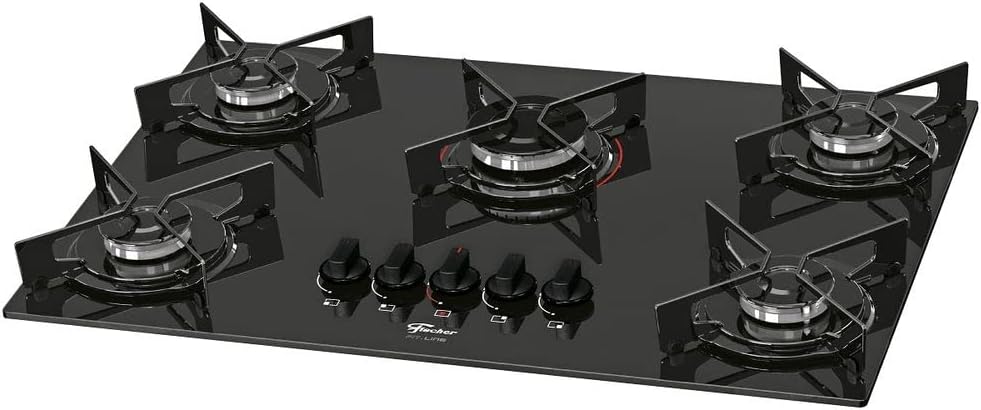 O Cooktop Fischer 5Q Fit Line é equipado com cinco queimadores de tecnologia italiana, conhecidos pela alta eficiência e longa vida útil. O acendedor superautomático simplifica o uso, permitindo que você inicie o preparo dos alimentos de forma rápida e prática, sem a necessidade de botões extras ou esforço adicional.