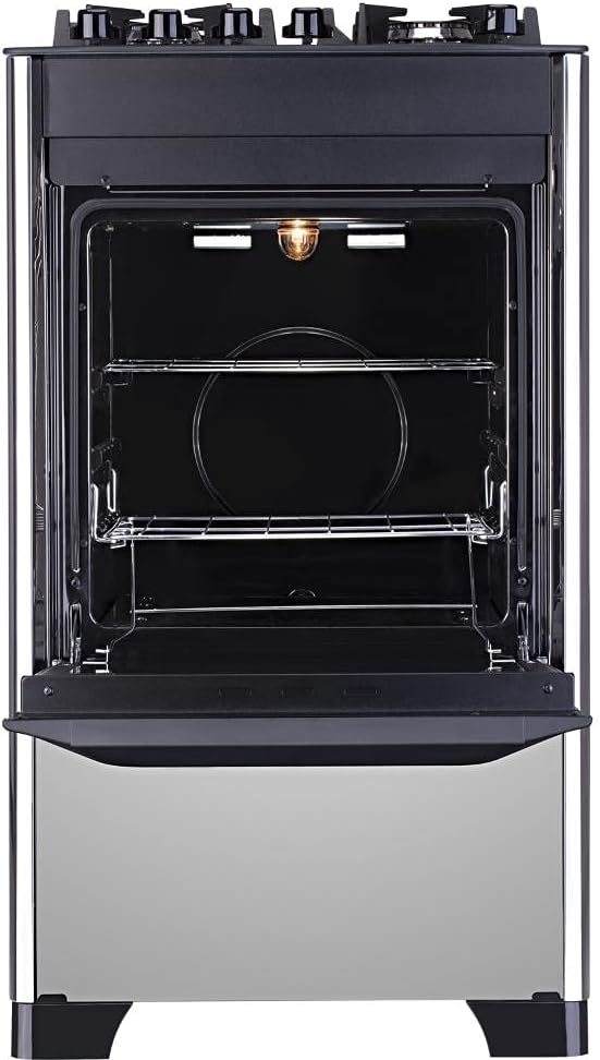 O forno espaçoso com 60 litros de capacidade permite assar pratos maiores com facilidade. A presença de uma gaveta tipo assadeira torna o armazenamento mais prático, permitindo que você organize seus utensílios com facilidade e ganhe agilidade no dia a dia da cozinha.