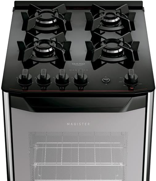 O fogão Dako Magister Style é a escolha ideal para quem busca performance e elegância na cozinha. Com design moderno na cor preta e alta eficiência energética, este eletrodoméstico combina praticidade com um visual sofisticado para transformar o preparo das suas refeições diárias.