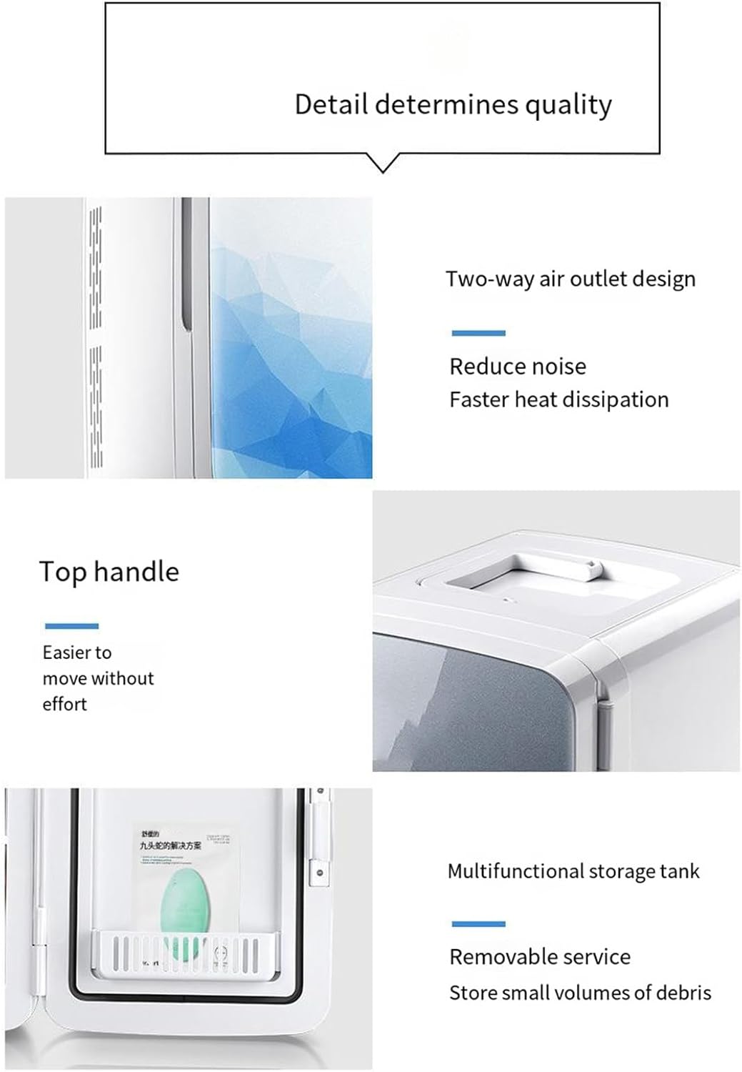 Projetada para ser discreta, a mini geladeira portátil conta com tecnologia de refrigeração semicondutora que garante uma operação silenciosa e de baixo decibéis. Isso assegura um ambiente tranquilo enquanto o sistema de baixo consumo de energia mantém o desempenho elevado sem pesar na conta de luz.