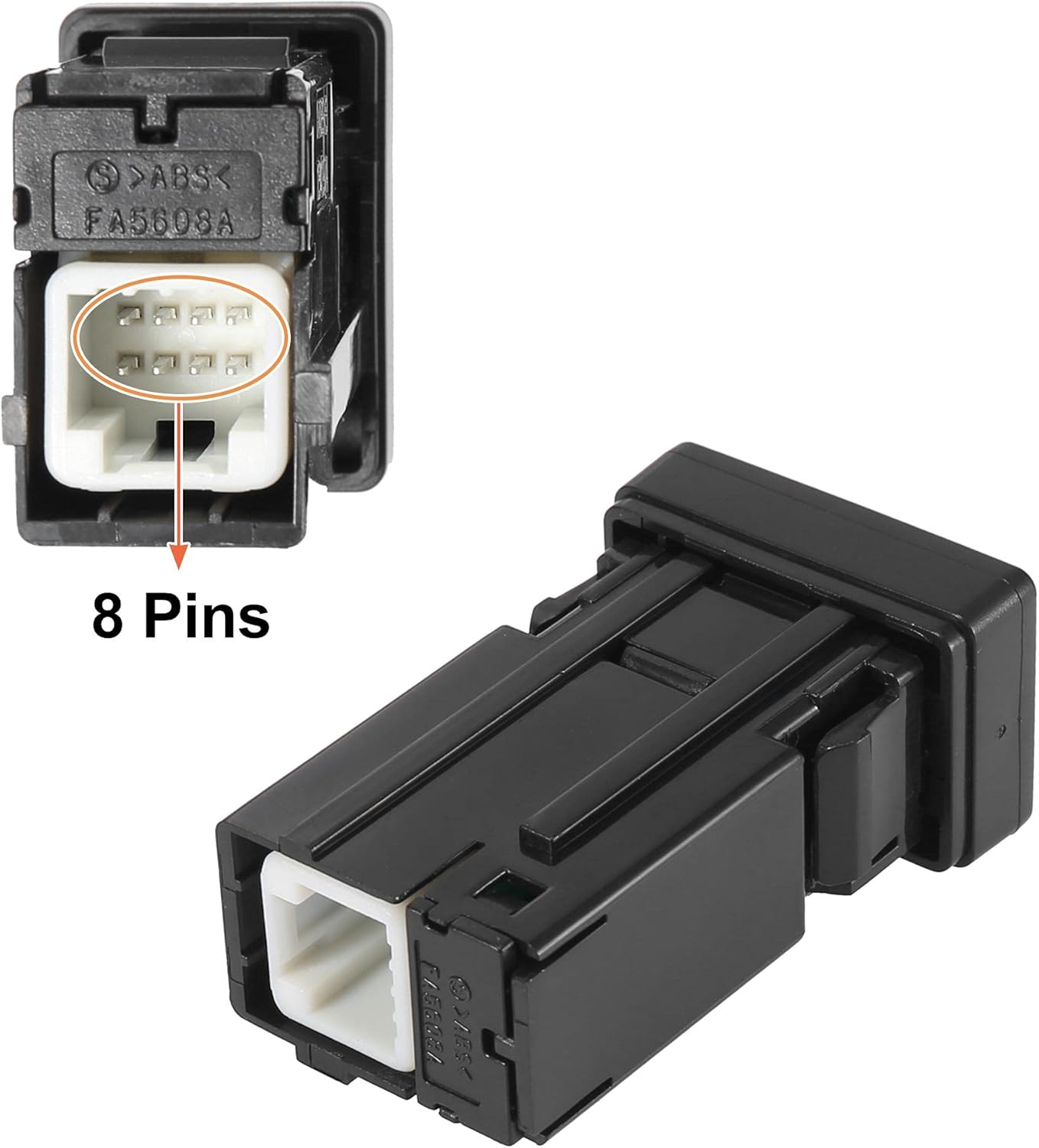 O produto possui dimensões compactas de 5,9 x 2,2 x 3,4 cm e é construído com uma combinação robusta de plástico e metal. O modelo é identificado pelo número de peça 86190-02020, contando com um conector de 8 pinos e pesando apenas 31 gramas, o que assegura leveza e um encaixe perfeito no painel.