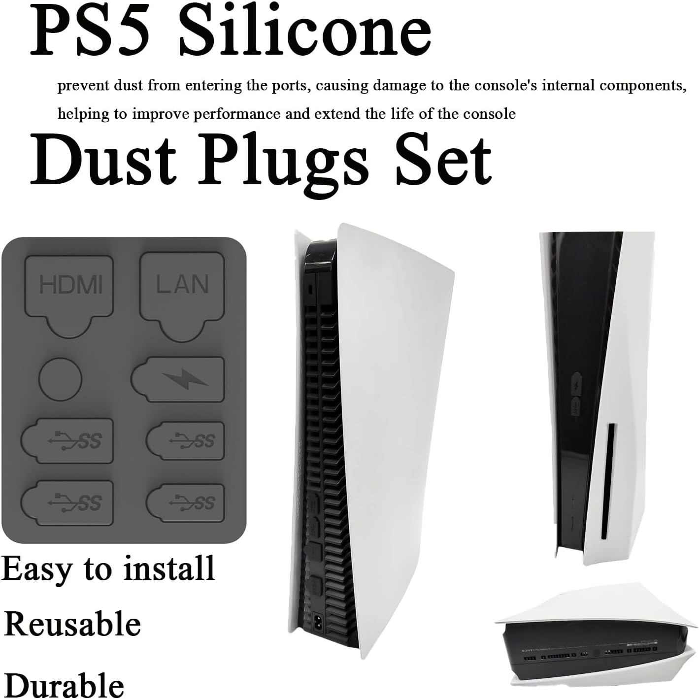 Este conjunto 8 em 1 oferece uma solução prática para a limpeza e proteção do seu PS5, impedindo danos causados por partículas de poeira. O silicone flexível assegura uma fácil instalação e remoção, ajustando-se perfeitamente às portas USB e HDMI do console. Além disso, o material resistente evita desgaste com o tempo, garantindo proteção prolongada.