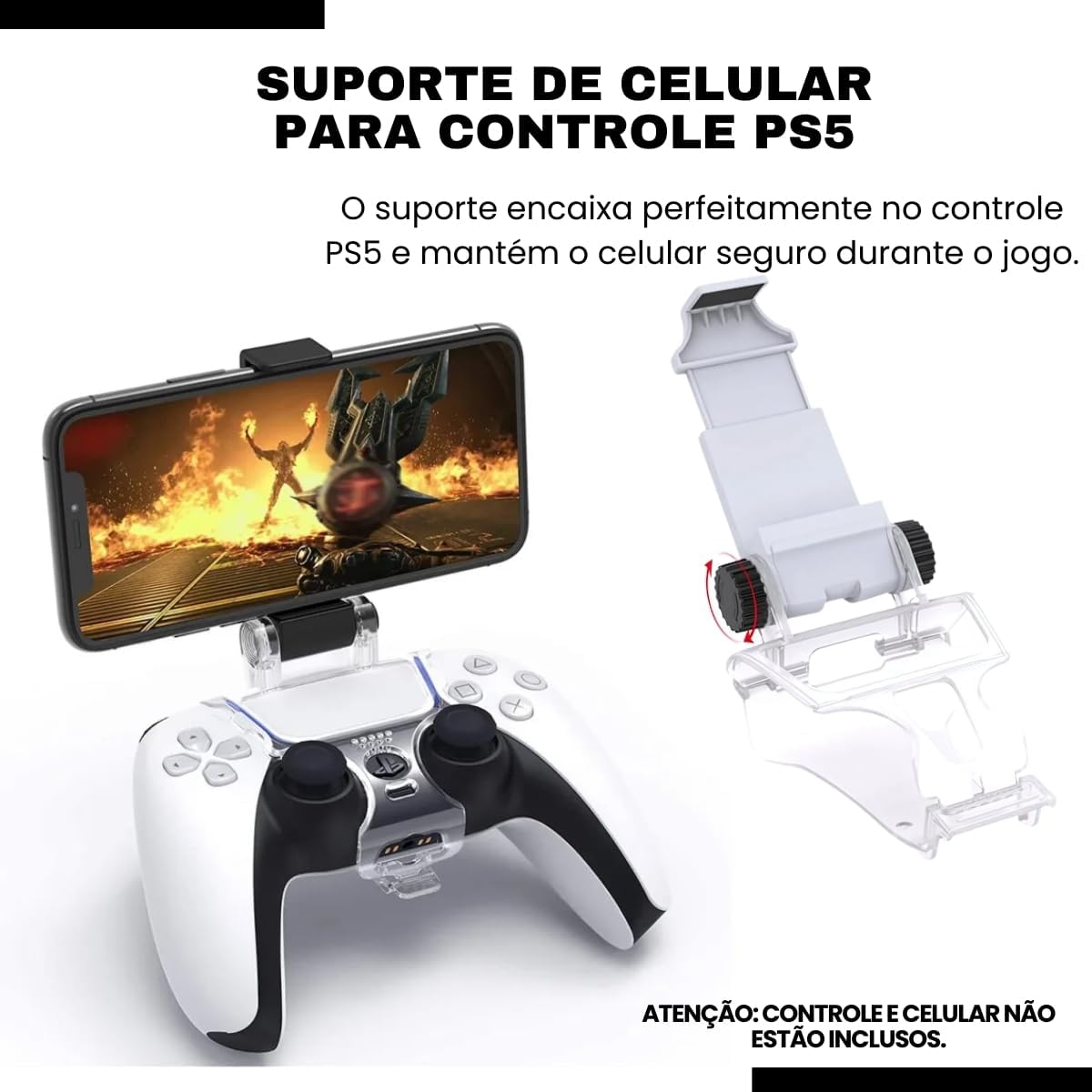 Ideal para gamers que buscam conforto e praticidade ao jogar no smartphone com o controle PS5 DualSense, especialmente fãs dos jogos mobile que desejam melhorar a ergonomia e a experiência de jogabilidade em títulos competitivos.