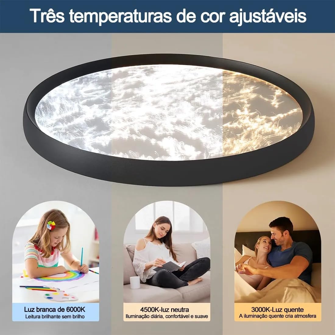 Esta luminária LED de teto é perfeita para quem busca uma solução de iluminação prática e elegante para ambientes residenciais, especialmente em quartos e áreas internas da casa. Seu controle remoto e ajuste de temperatura da cor beneficiam moradores que valorizam conforto visual e personalização no ambiente.