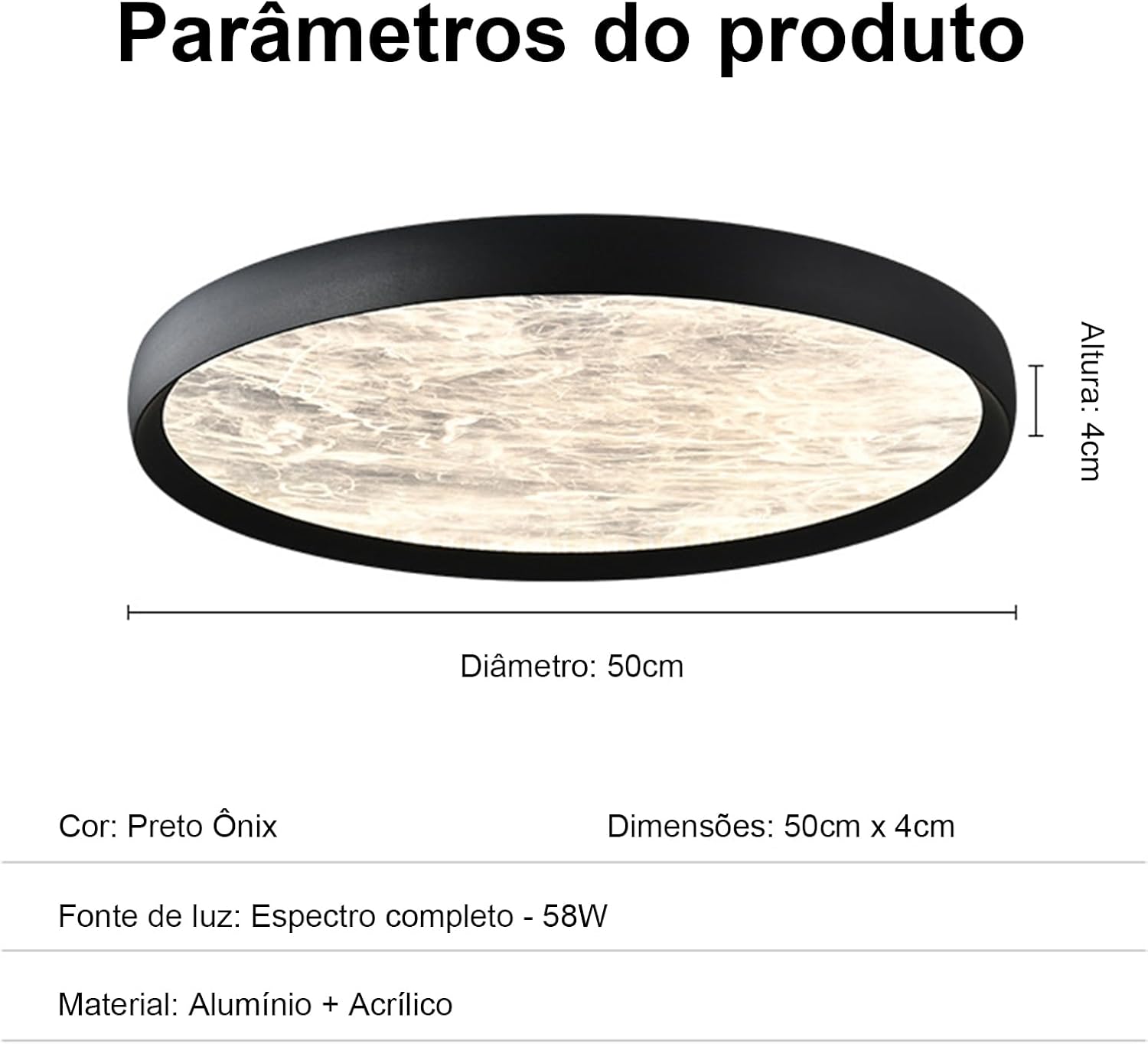 Compatível com voltagens 110 e 220 volts e equipada com lâmpada LED, este produto não utiliza bateria nem pilha. O pacote inclui a luminária LED de teto, que mede 58 x 57 x 11 cm para transporte e armazenamento. O modelo 715 combina funcionalidade com design moderno.
