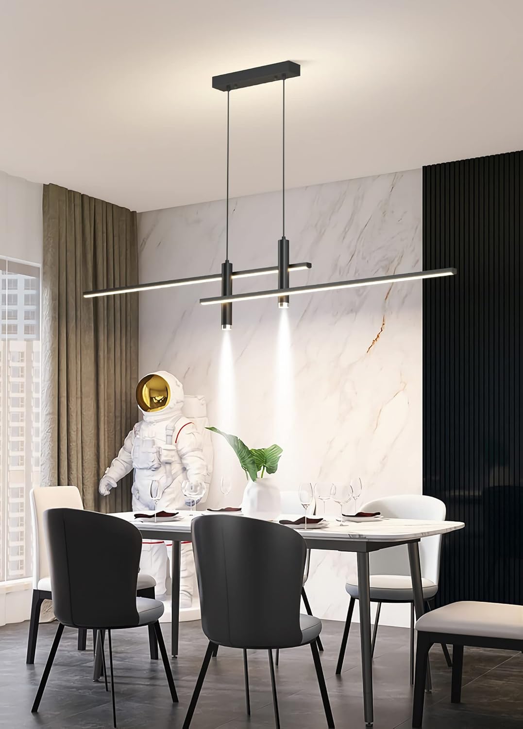 Esta luminária pendente LED é perfeita para quem valoriza iluminação eficiente e design moderno em áreas diversas, como mesas de jantar, salas de estar, cafés e escritórios. Ideal para quem busca uma peça funcional que une beleza e praticidade, ajustável a diferentes estilos e ambientes.